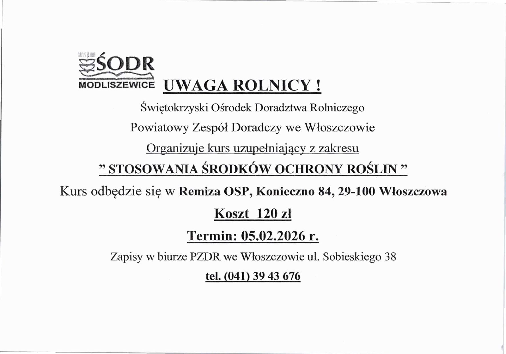 Kurs uzupełniający - " Stosowanie środków ochrony roślin"