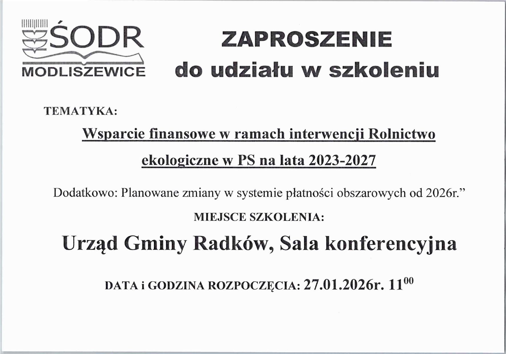 Szkolenie - wsparcie finansowe w ramach interwencji Rolnictwo ekologiczne w PS na lata 2023-2027